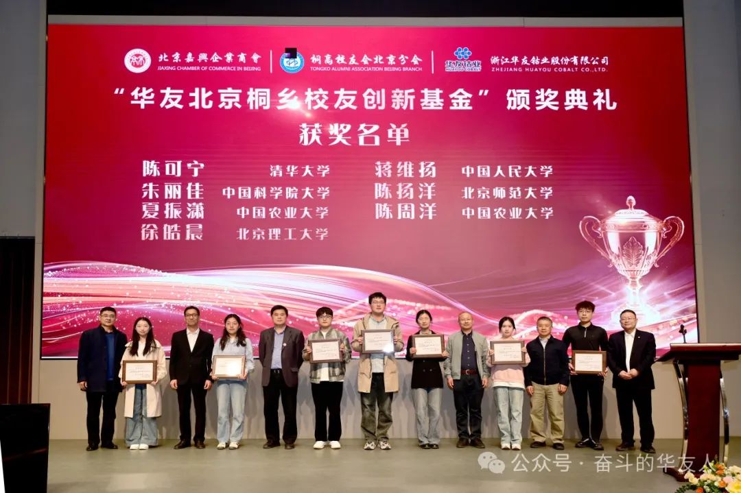 On March 22, the inaugural Huayou Beijing-Tongxiang Alumni Innovation Fund Awards Ceremony was held in Beijing, co-hosted by the Beijing Jiaxing Chamber of Commerce and the Beijing Branch of Tongxiang Senior High School Alumni Association. The event brought together government officials, industry leaders, and alumni to celebrate outstanding innovative achievements, strengthen hometown ties, and discuss collaborative development .